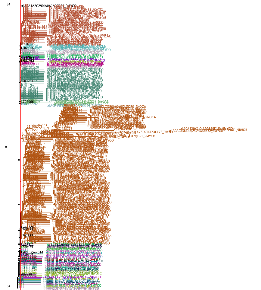 The single other outlying sequence appears to come from Mycobacterium, so we should look at the sequence alignment to see whether there is an issue with the alignment (Figure 15).